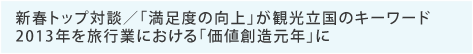 “Boosting Satisfaction”is the Keyword for a Tourism Nation Country 2013 is the Start of “Value Creation”in the Travel Industry